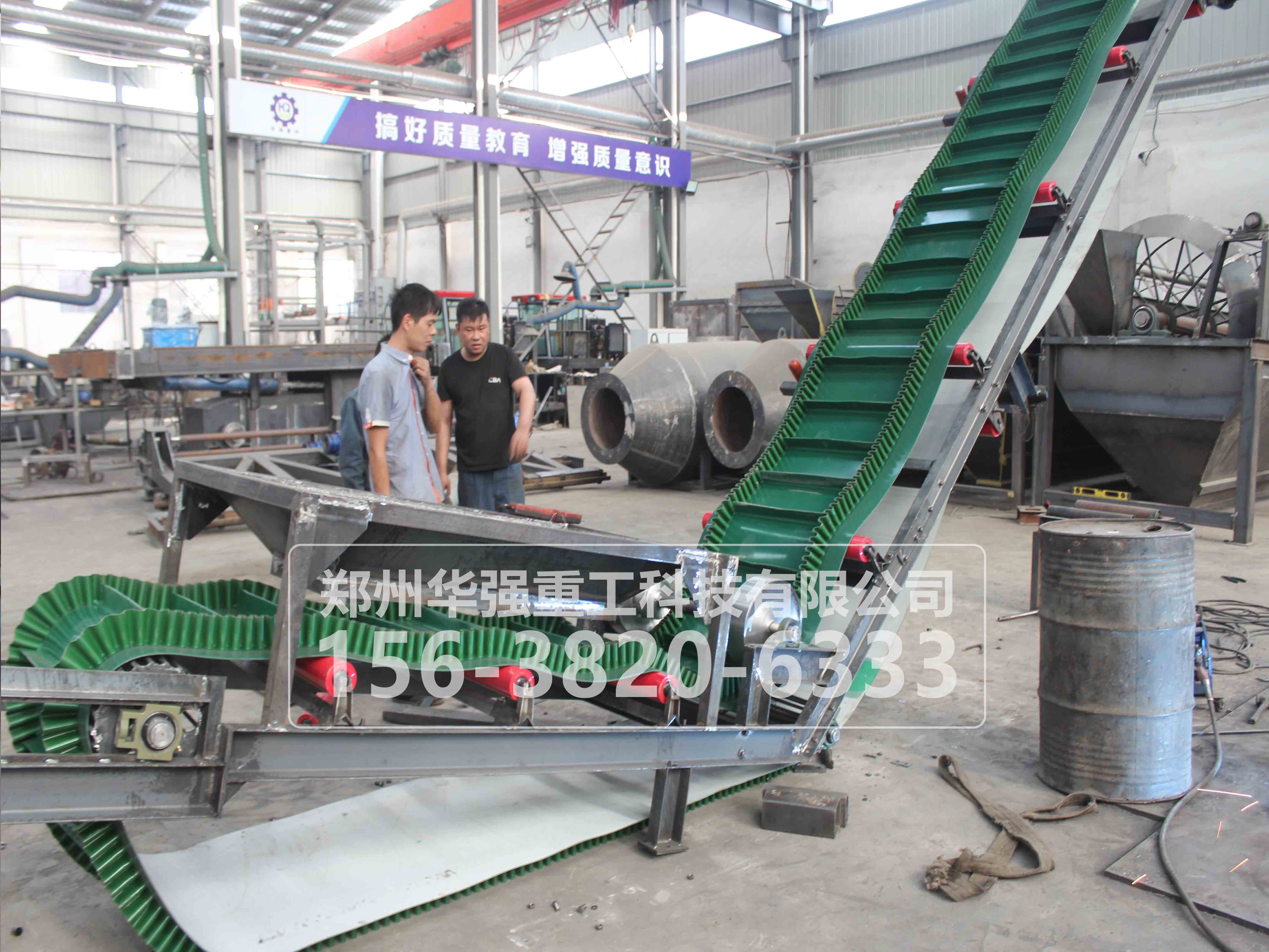大傾角皮帶輸送機(jī)采用具有波狀擋邊和橫隔板的輸送帶,技術(shù)先進(jìn)、結(jié)構(gòu)新穎、傾角任選范圍(0°~90°)、輸送量大、占地面積小、能耗省、噪音低、膠帶運(yùn)行平穩(wěn)、使用壽命長、可選型式多等特點(diǎn),有利于總體設(shè)計(jì)和節(jié)約總體造價(jià)等優(yōu)點(diǎn),是大傾角輸送散料的理想設(shè)備.