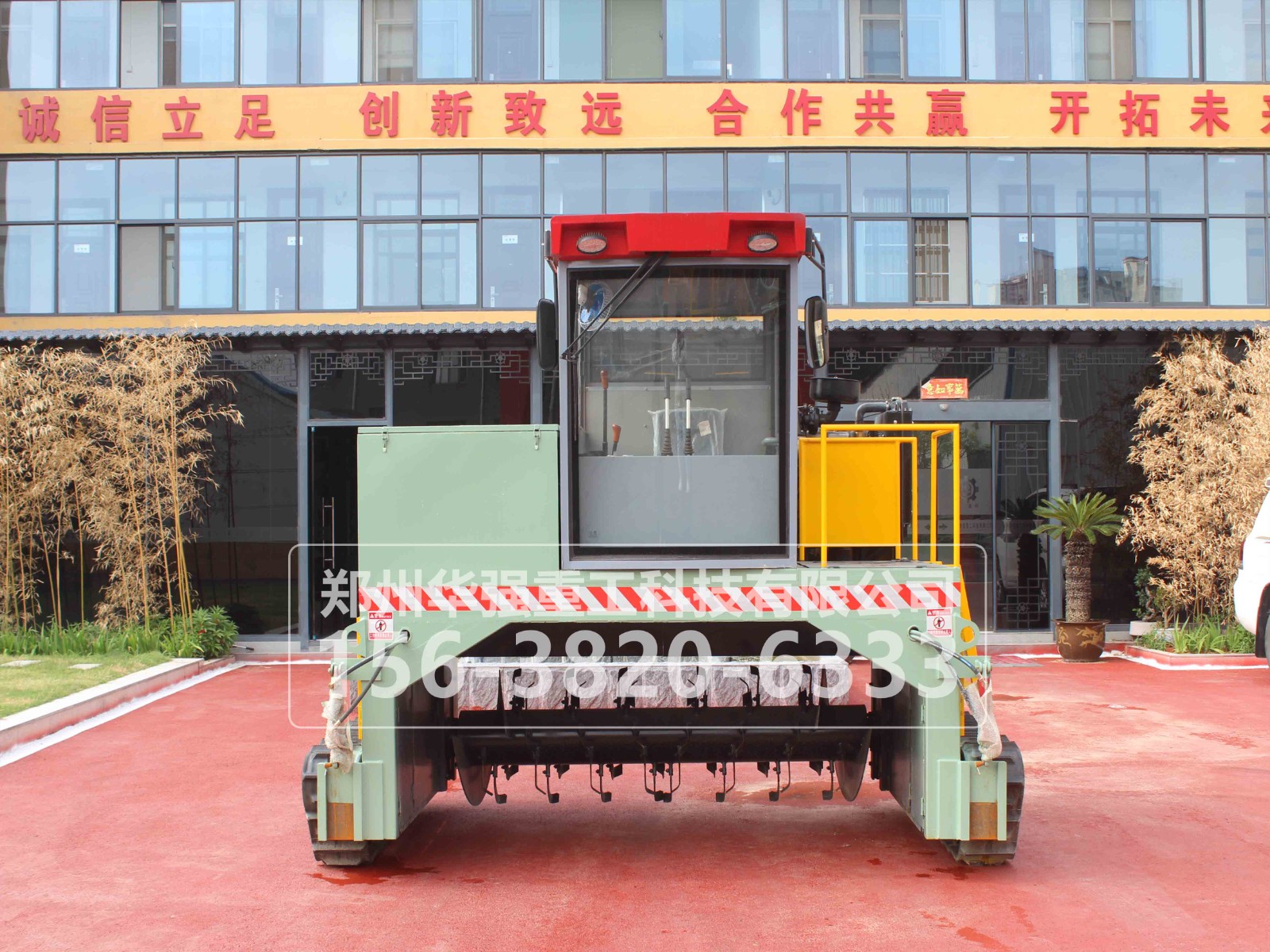 該機(jī)采取四輪行走設(shè)計(jì),可前進(jìn)、倒退、轉(zhuǎn)彎,由一人操控駕駛。行駛中整車騎跨在予先堆置的長(zhǎng)條形肥基上,由機(jī)架下掛裝的旋轉(zhuǎn)刀軸對(duì)肥基原料實(shí)施翻拌、蓬松、移堆,車過(guò)之后篡成新的條形垛堆。